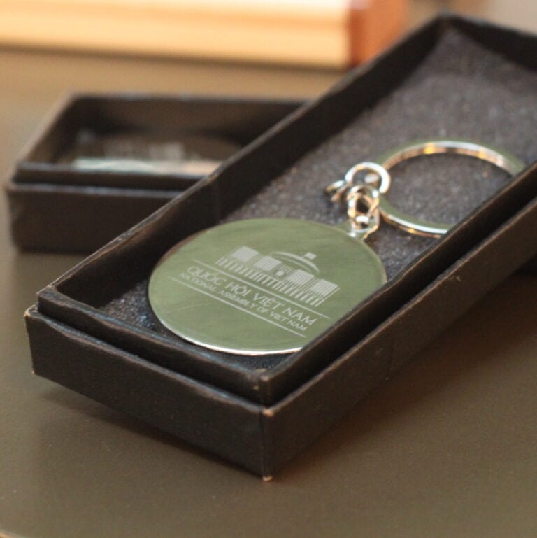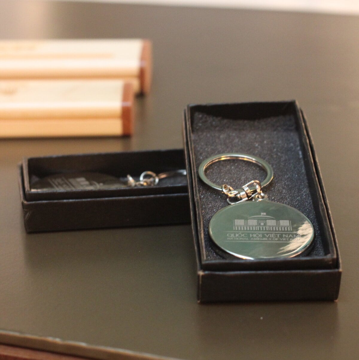 Móc khóa lịch vạn niên: móc khóa kim loại có chức năng xem lịch trong vòng 50 năm tới, tiện dụng và độc đáo. Một mặt xoay là lịch từ năm 2014 đến năm 2064, một mặt in ấn logo Quốc Hội Việt Nam