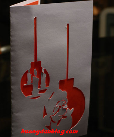 Bước 2 Cách cắt hình (cái này thì các bạn xem như trong hình rồi tự cắt). Các bạn chú ý điểm đầu và điểm cuối của cây thông, nếu chú ý 2 điểm này thì việc làm thiệp nổi như trên rất đơn giản. Bạn đừng nên cắt vội lên tấm bìa đang làm thiệp vì nó có thể không thành công cho mấy lần đầu. Bạn nên cắt nháp trên các tấm bìa hoặc giấy khác.